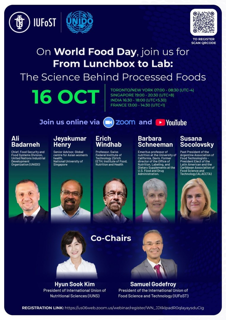 The International Union of Food Science and Technology (IUFoST) presents to us From Lunchbox to Lab: The Science Behind Processed Foods. The following zoom webinar explains how science turns raw ingredients into foods that are safe, nutritious, tasty, and sustainable while addressing common myths about “processed foods.”